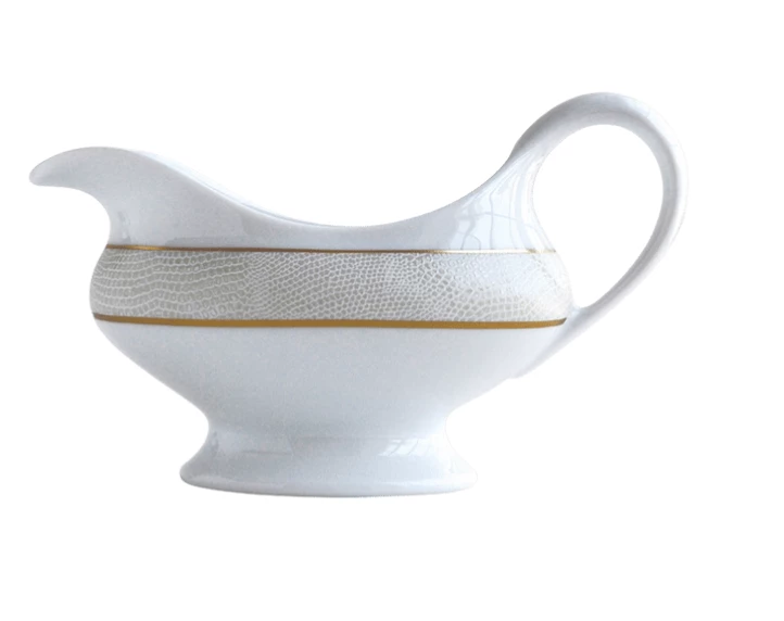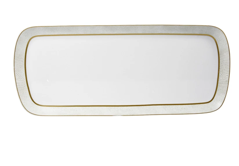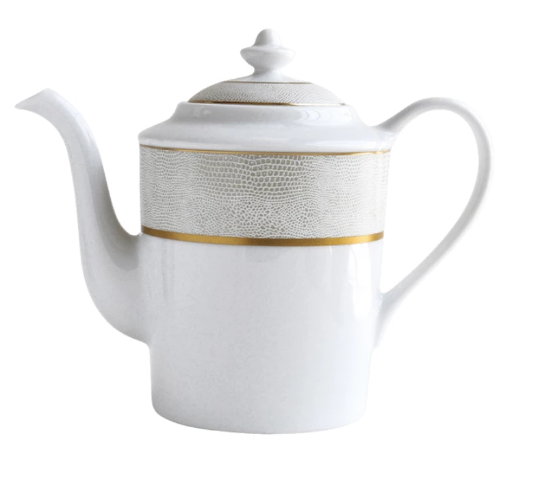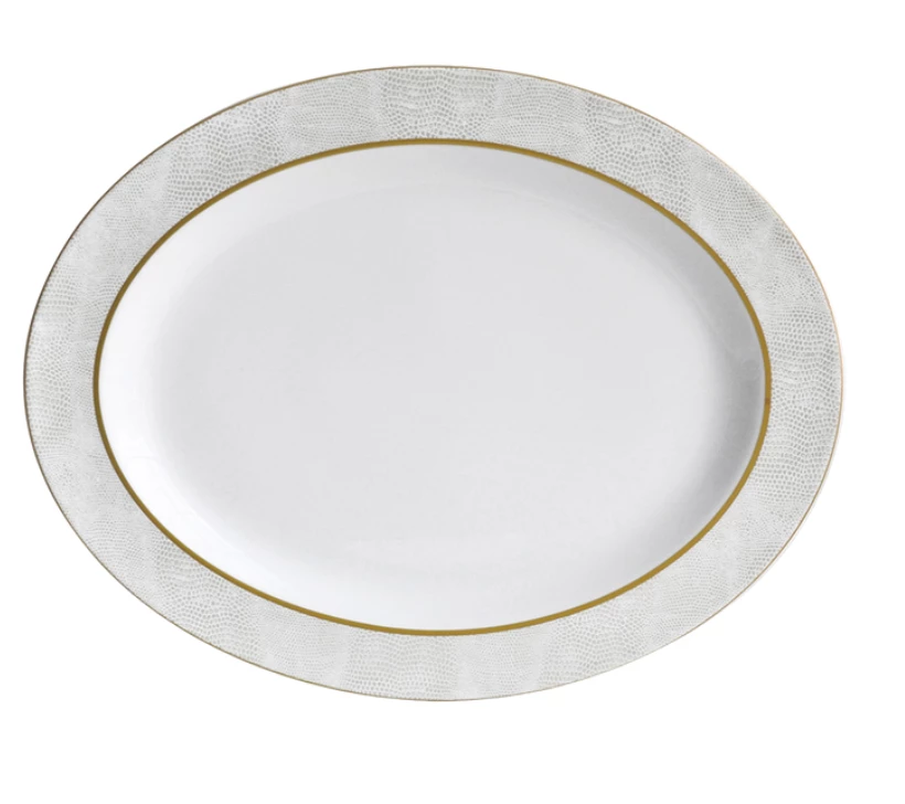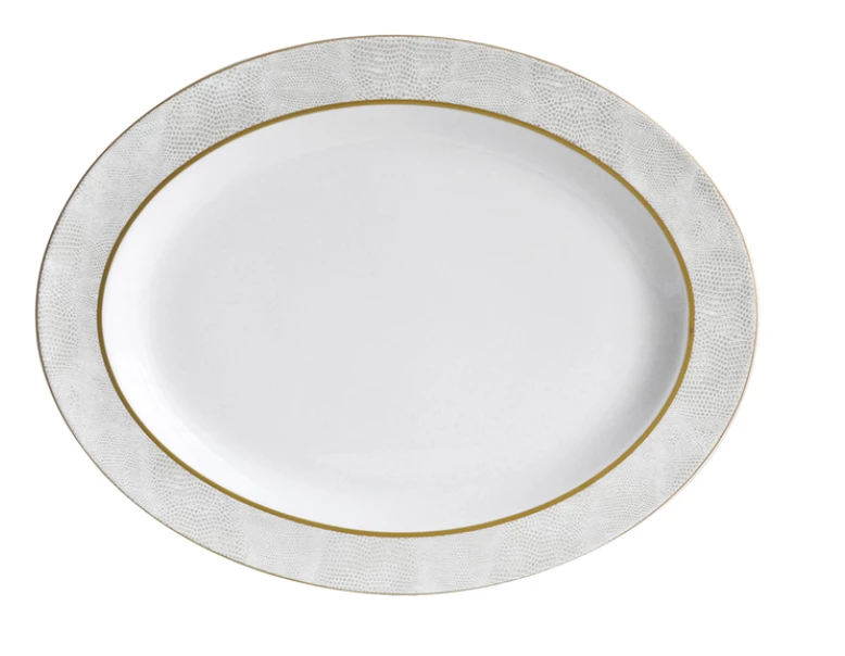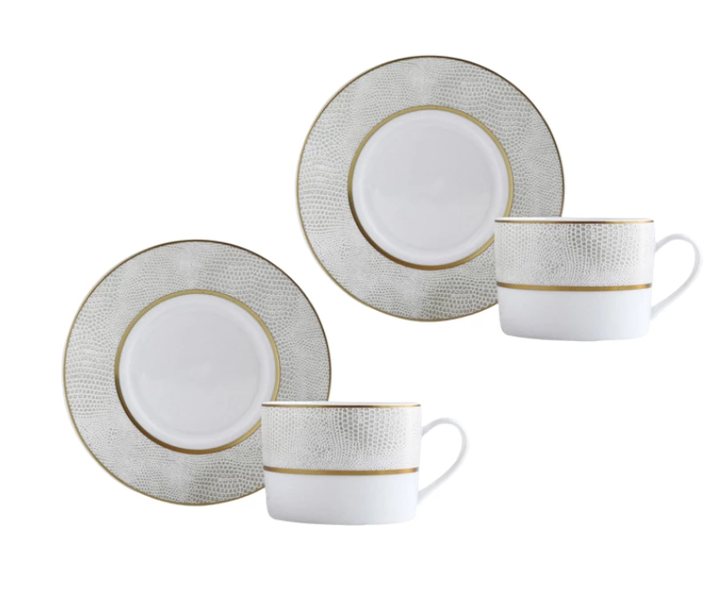 An intricately embossed finish evokes the captivating look and texture of snake skin in this eye-catching collection from Bernardaud.