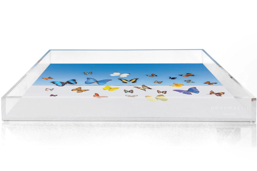 Our Handmade Gray Malin Acrylic Tray features the artists’ most iconic image of butterflies You can use the tray to serve your guests at a cocktail party or as a decorative piece. It makes a wonderful gift and arrives in a keepsake Gray Malin box.