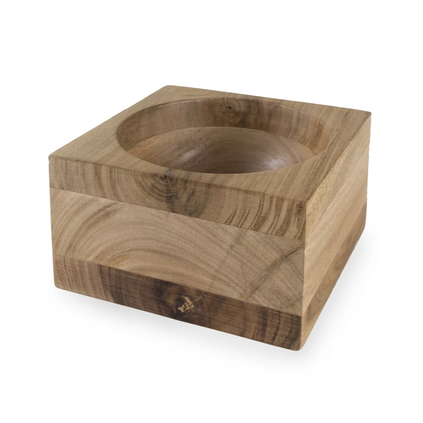 These wooden bowls are carefully pieced and shaped by artisans with visual joints and wabi-sabi subtleties in texture that add to their handcrafted beauty.
