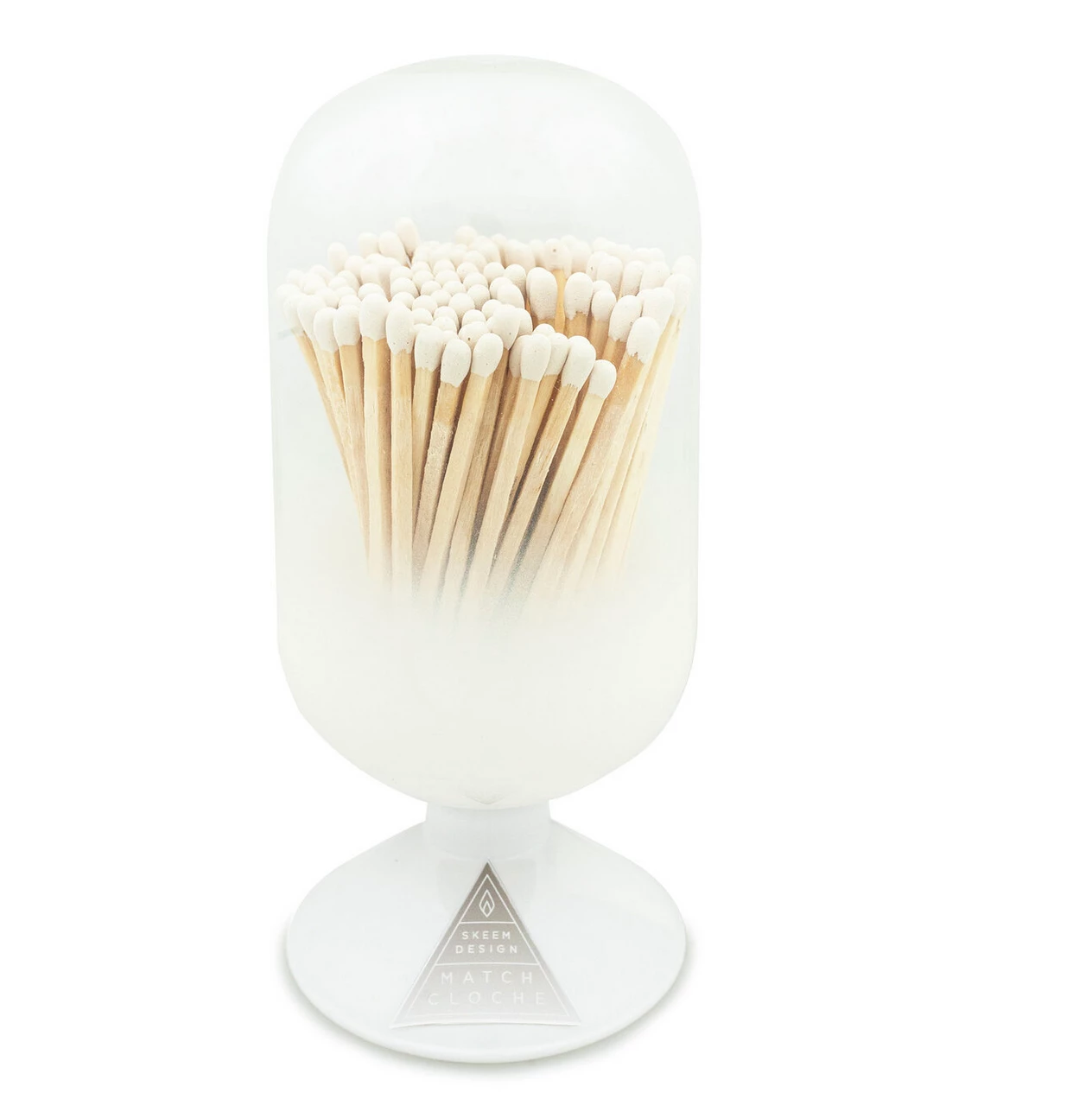 The soft, white, ombre finish of the Cloud Glass Cloche is a striking piece for any decor style. Display your matches with this hand blown match cloche. Makes for a great gift on its own or with a candle. Pretty as decor on a table with books