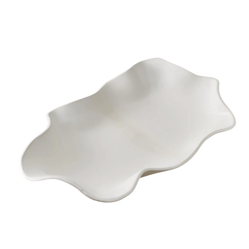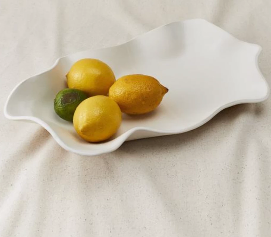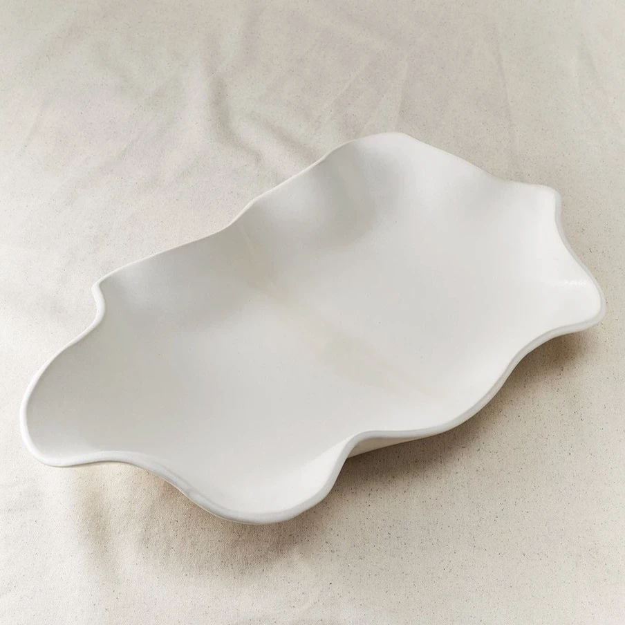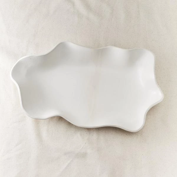 This handmade ceramic piece makes a beautiful piece of decor or can be used to serve. The hand-crafted tray captures the essence of organic waves on the sea with a soft edge in white.