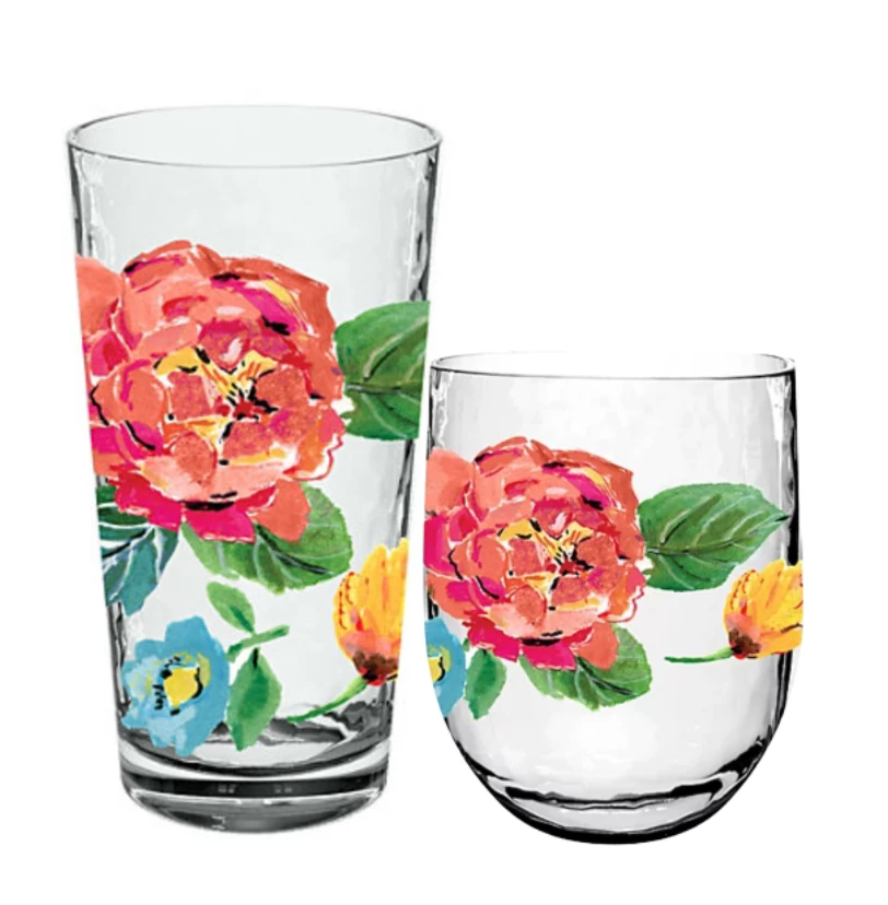For the flower lovers out there, these pretty acrylic beverage glasses add a touch of whimsy to your table.