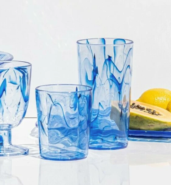 Bring the ocean indoors with these beautiful blue swirl acrylic drinkware. They are ideal for poolside and outdoor dining since they are shatterproof and dishwasher safe and they Stack too!