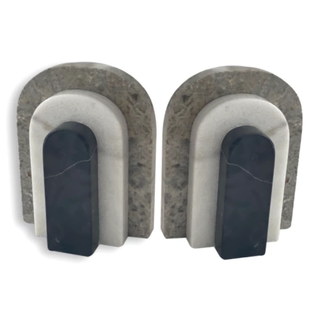 These new bookends have layers of marble in shades of grey, white and black. The striking design makes them a unique addition to any space.