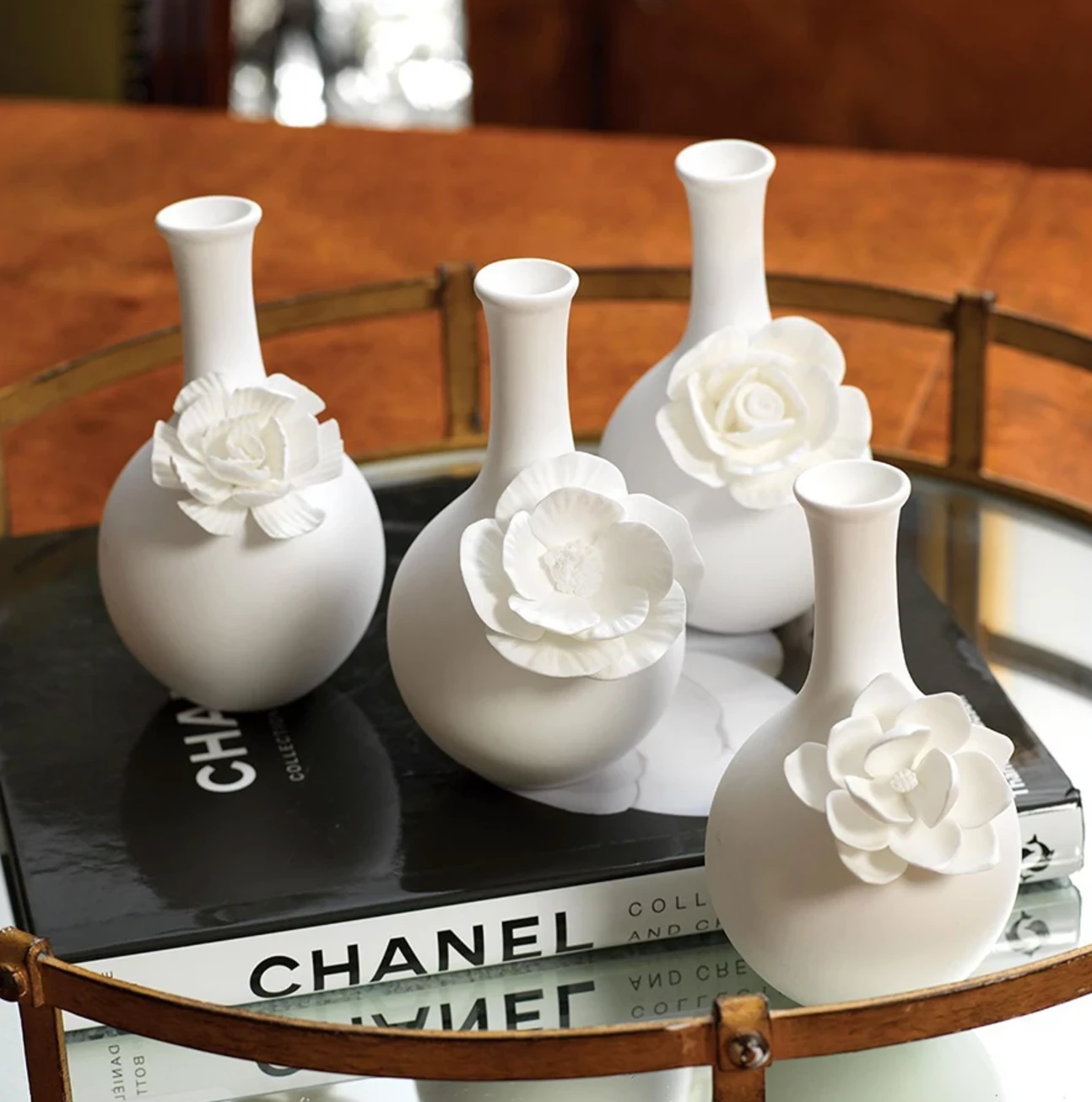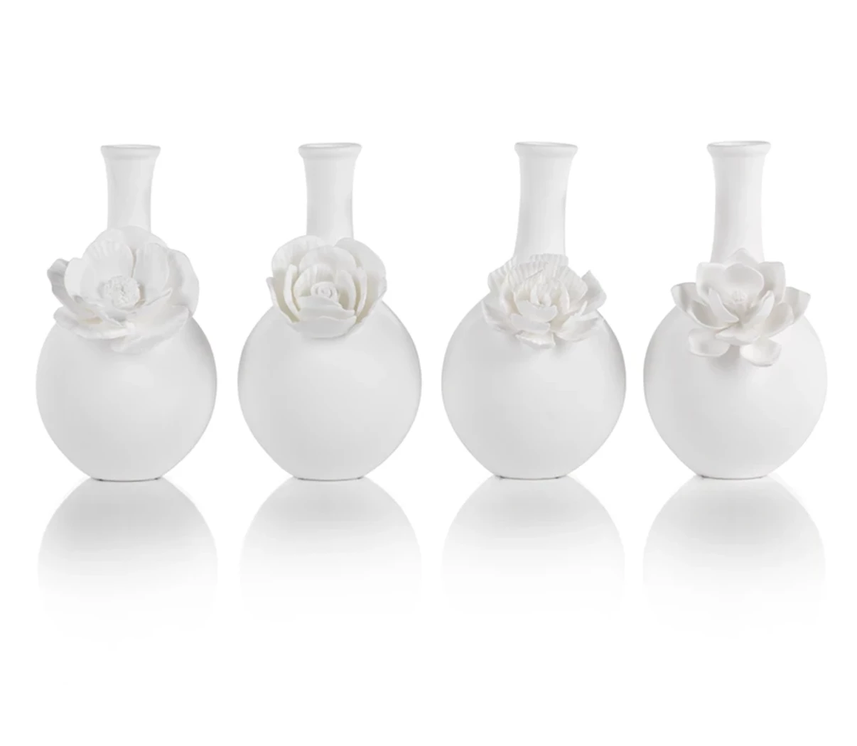 These small porcelain bud vases are big on style. Each vase features its own unique floral design and they look beautiful when displayed together or alone.